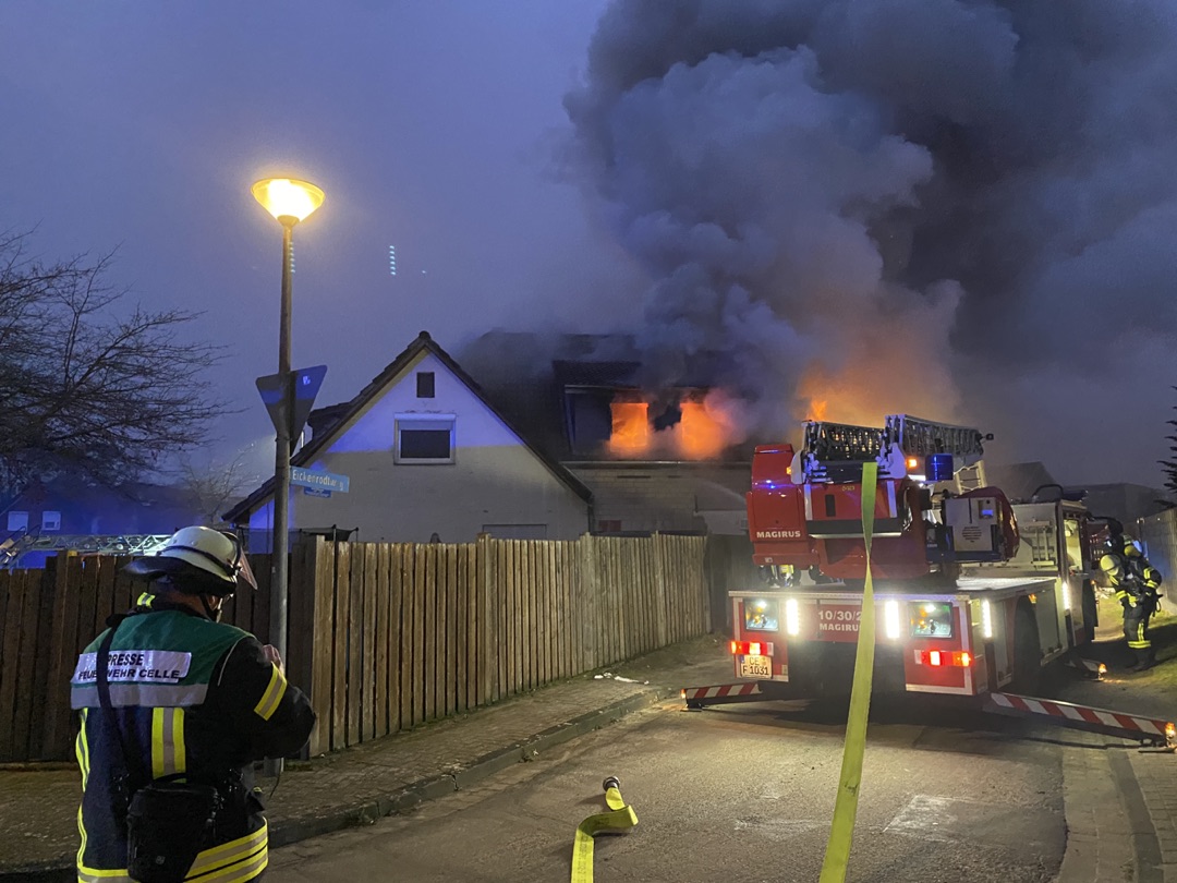 Am 25. Januar um 16:59 Uhr wurde die Feuerwehr Celle zu einer Feuermeldung in die Fuhrberger Straße alarmiert. Bereits auf der Anfahrt konkretisierte sich die Einsatzmeldung. Flammen sollten aus dem Dachstuhl eines Wohnhauses schlagen. Es war nicht bekannt, ob sich noch Personen in dem Gebäude befanden.