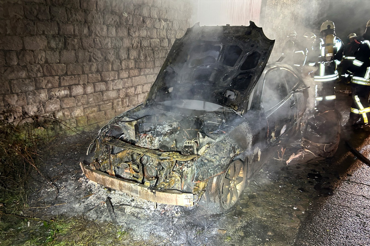 In der Nacht auf Samstag, 01.11.2025, geriet in Wolfstein (RP) ein Mercedes beim Laden der Batterie in Brand. Das Fahrzeug brannte vollständig aus. Die Feuerwehr konnte ein Übergreifen der Flammen auf eine angrenzende Scheune verhindern.