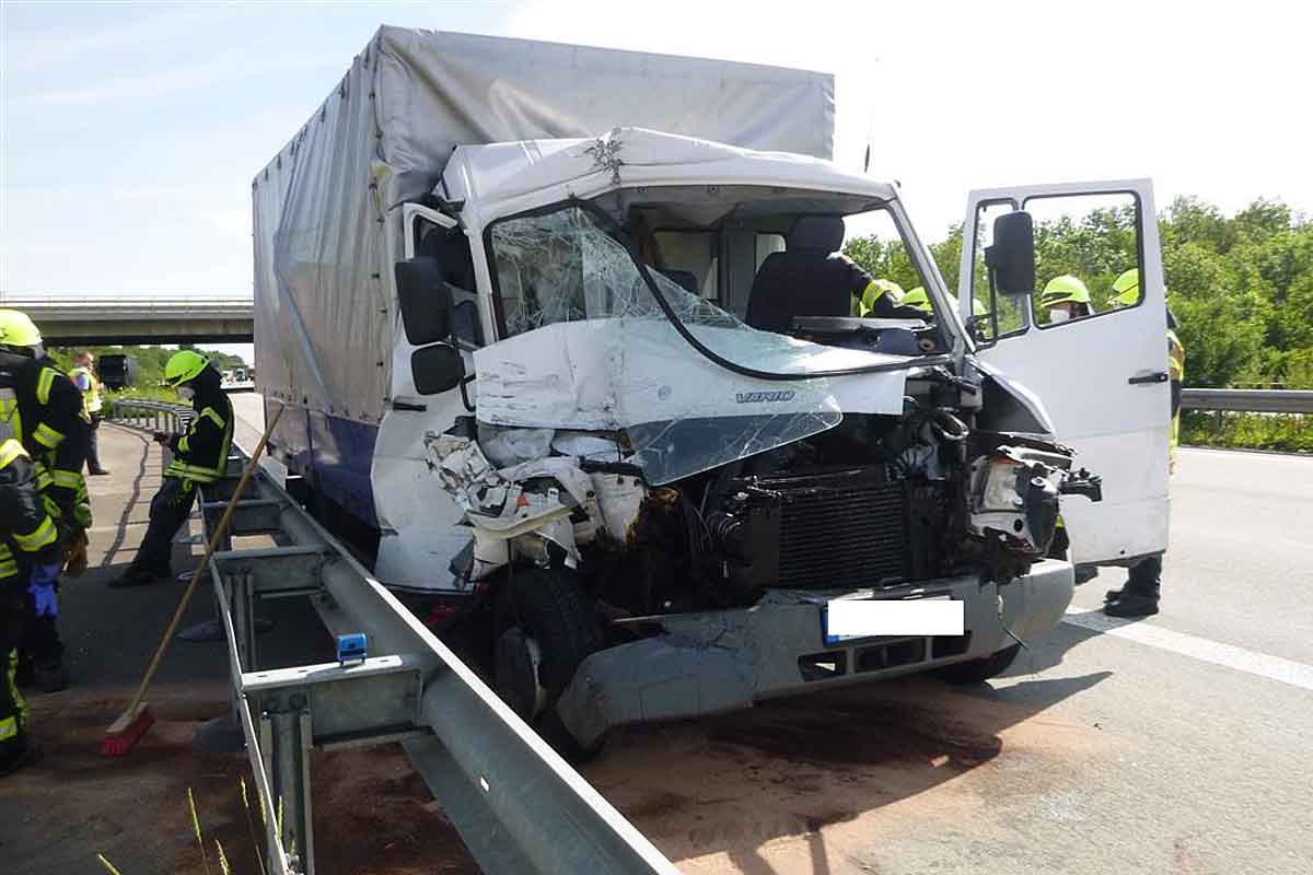 den Unfall wurde das Führerhaus des Kleintransporters komplett zerstört, das Fahrzeug war nicht mehr fahrbereit und musste abgeschleppt werden. Der 33-Jährige hatte dabei Glück im Unglück; er wurde nur leicht verletzt. Am Auflieger des LKW-Fahrers entstand Sachschaden am Unterfahrschutz, das Fahrzeug selbst war allerdings noch fahrbereit.
