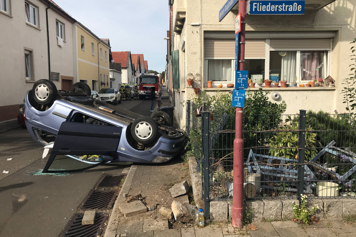 PKW schleudert aufs Dach in Worms (Bildquelle: Polizeidirektion Worms)