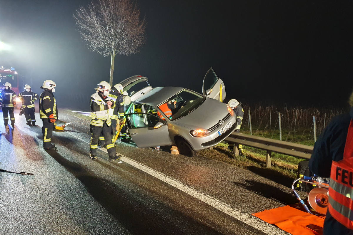 Im weiteren Verlauf wird die Schutzplanke die Zufahrt zu einem Wirtschaftweg unterbrochen. Dies führte weiter dazu, dass der Fahrzeugführer mit seinem Pkw auf die abgeflachte und neu beginnende steigende Schutzplanke auffuhr, bis der Pkw mit den linken Reifen den Kontakt zur Fahrbahn verlor und sich in der Schutzplanke verkeilte. Durch die Feuerwehren Alsheim und Gimbsheim konnte er mit lediglich leichten Verletzungen aus dem Pkw geborgen werden.