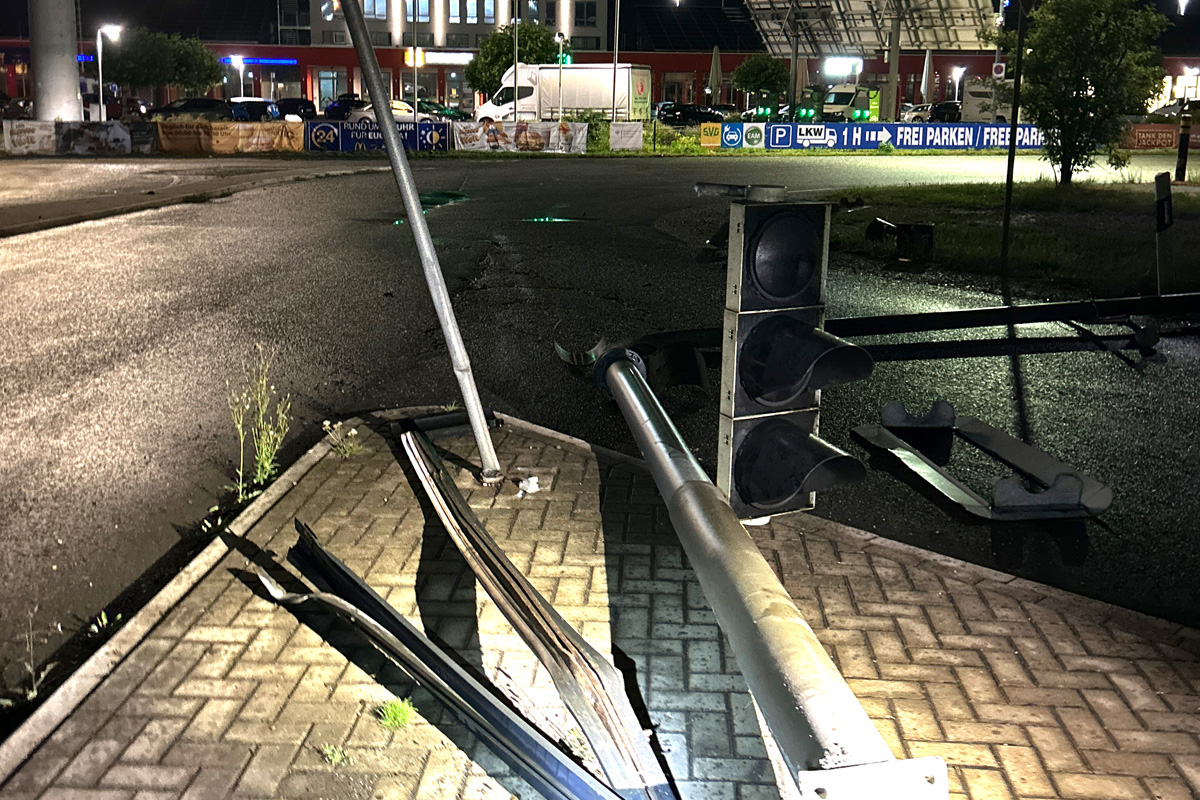 Zu einer blockierten Zufahrt durch einen querliegenden Ampelmast am Rasthof Lohfeldener Rüssel wurden Beamte des Polizeireviers Ost in der Nacht zum Mittwoch (23.7.2025) gegen 1:30 Uhr gerufen.
