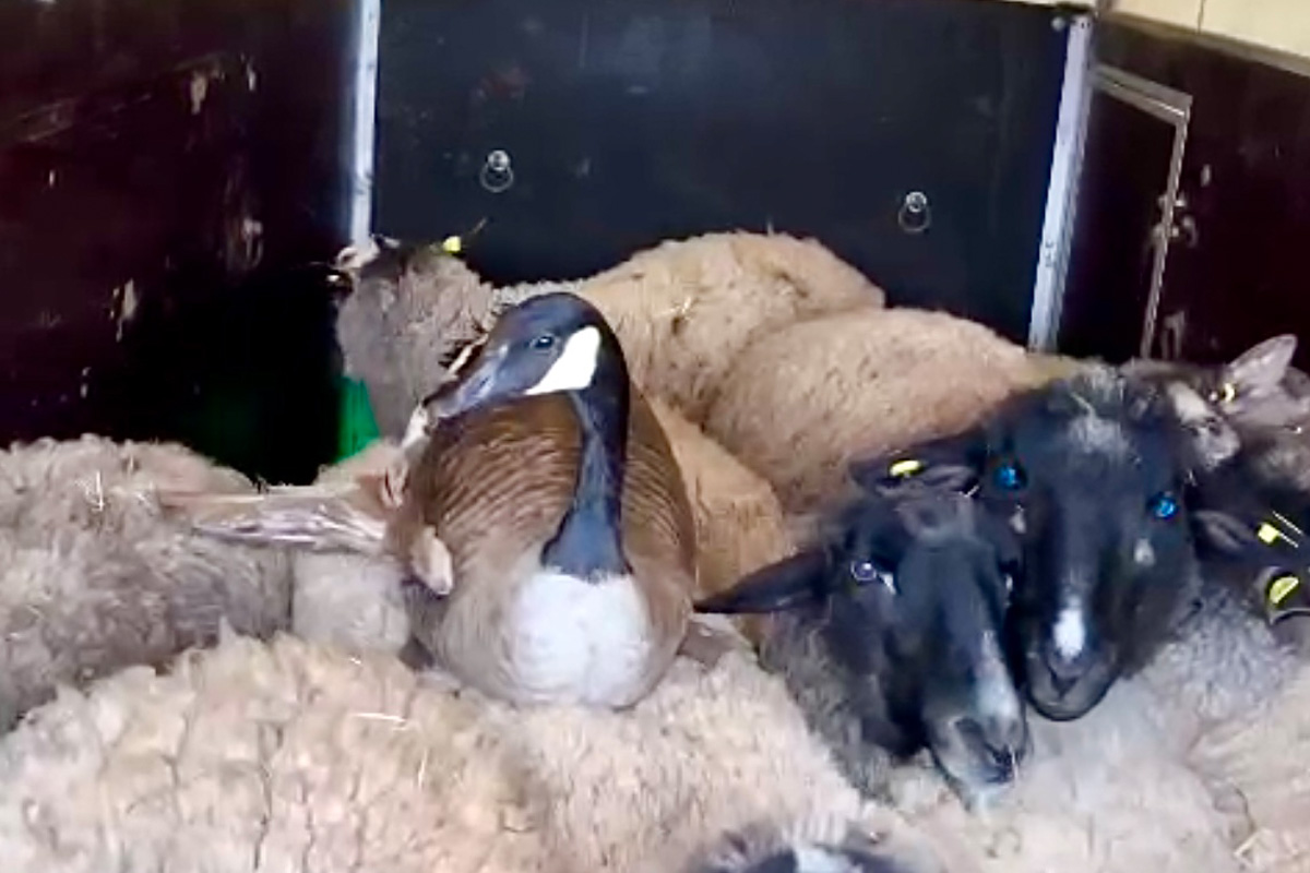 Der Eigentümer der Schafsherde fütterte und versorgte die Kanadagans wie die Schafe auch.