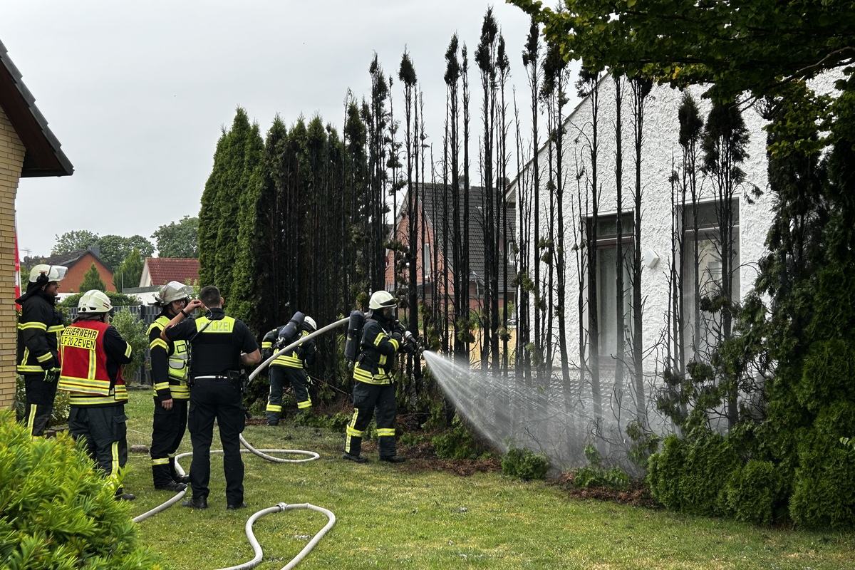 Eine Hecke brannte am Donnerstag, 29.06.2023, in Zeven. Niemand wurde verletzt.