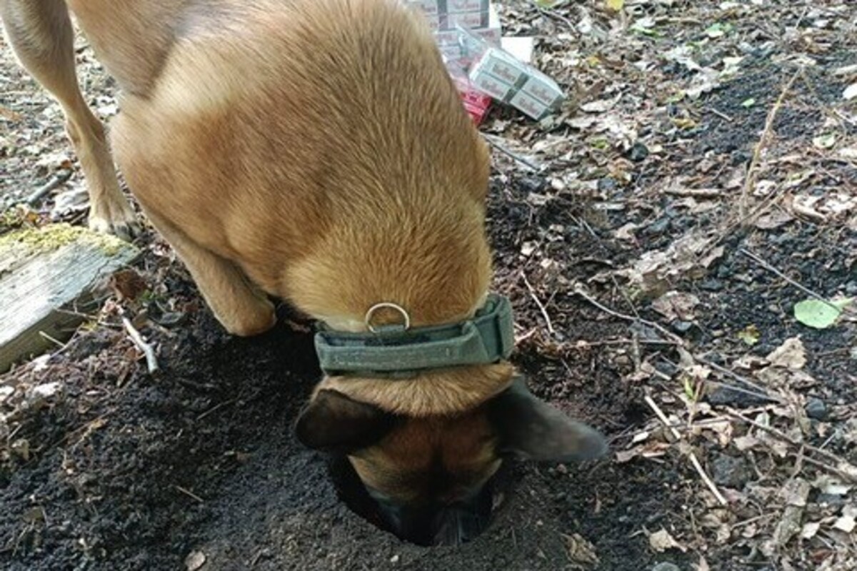 Durch die feine Spürnase von "Dara" konnten in zwei Erdbunkern auf dem verwilderten Gelände an einer Bahnstraße in Pankow insgesamt 10.800 Stück unversteuerte Zigaretten festgestellt.